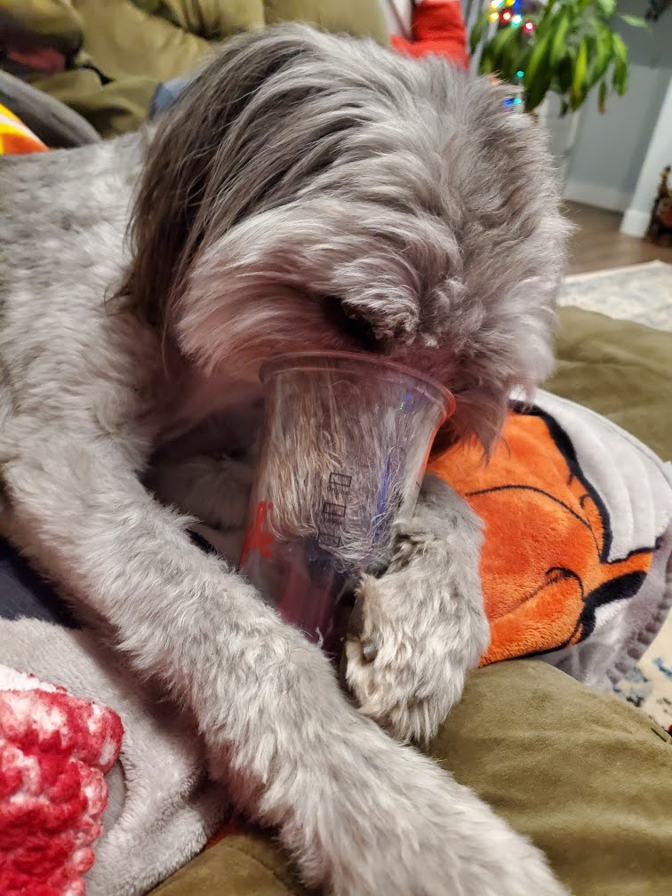 Clearly Teddy is not Wonder Woman But He is silly and so I thought You'd get a kick out of him really wanting whatever was in this cup! |